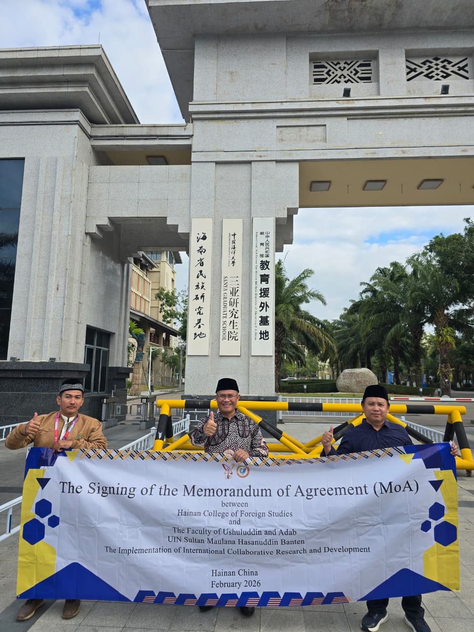 HAINAN, CHINA – Fakultas Ushuluddin dan Adab (FUDA) UIN Sultan Maulana Hasanuddin Banten resmi melebarkan sayap kerja samanya ke kancah internasional. Dalam kunjungan resmi yang berlangsung pada 2 hingga 6 Februari 2026, FUDA melakukan penandatanganan kerja sama strategis dengan Hainan College of Foreign Studies, Provinsi Hainan, China.