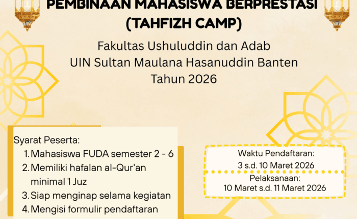 FUDA UIN SMH Banten has 3 study programs in ushuluddin and 3 study programs in adab and humanities.The Faculty of Ushuluddin and Adab is committed to being able to produce the next generation of the nation who have good character, have Ushuluddin and Adab knowledge, and have global insight, so that they are able to become role models in social life.